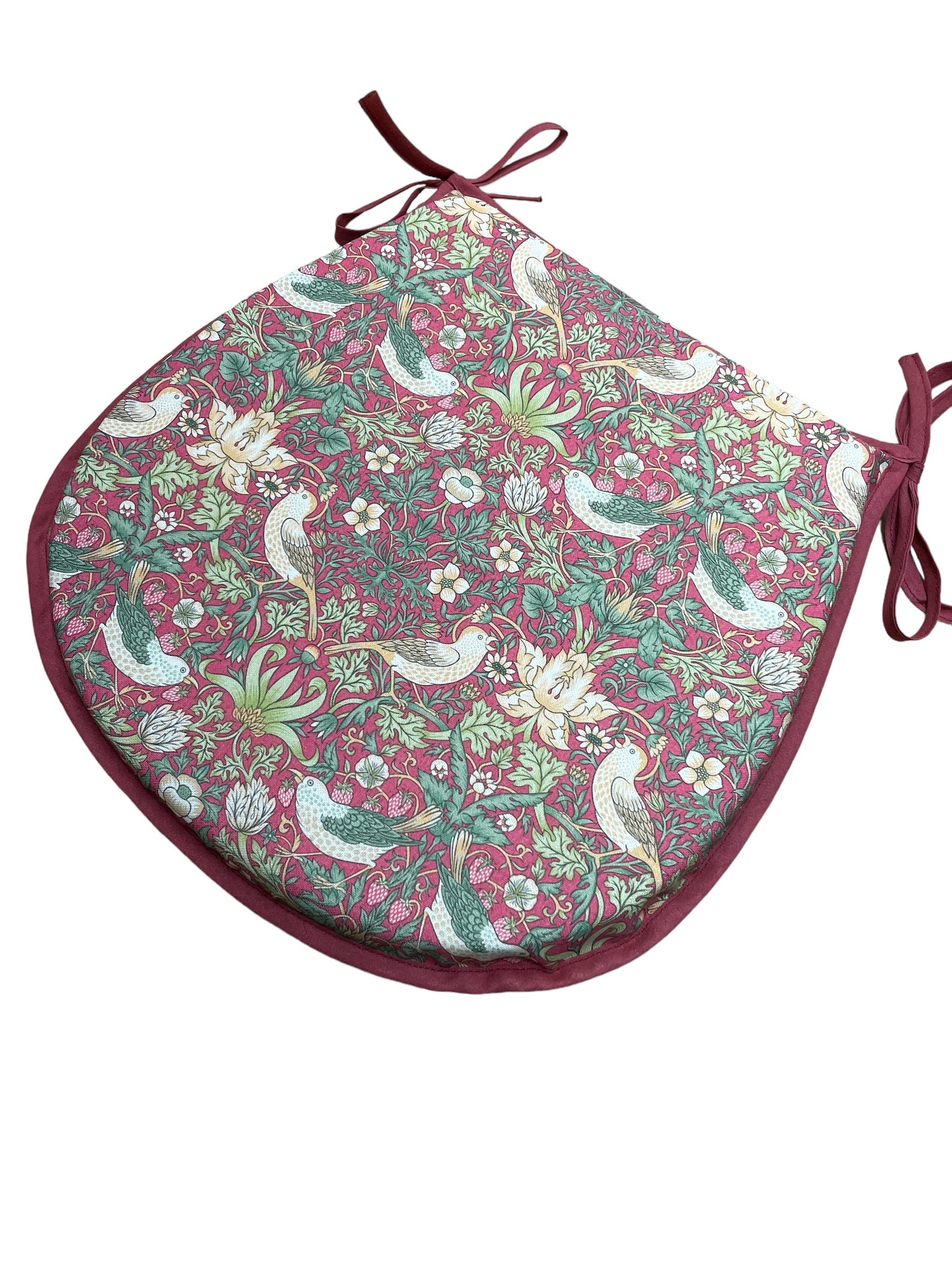William Morris - Strawberry Thief Crimson D-Shaped tie-on seat pads.