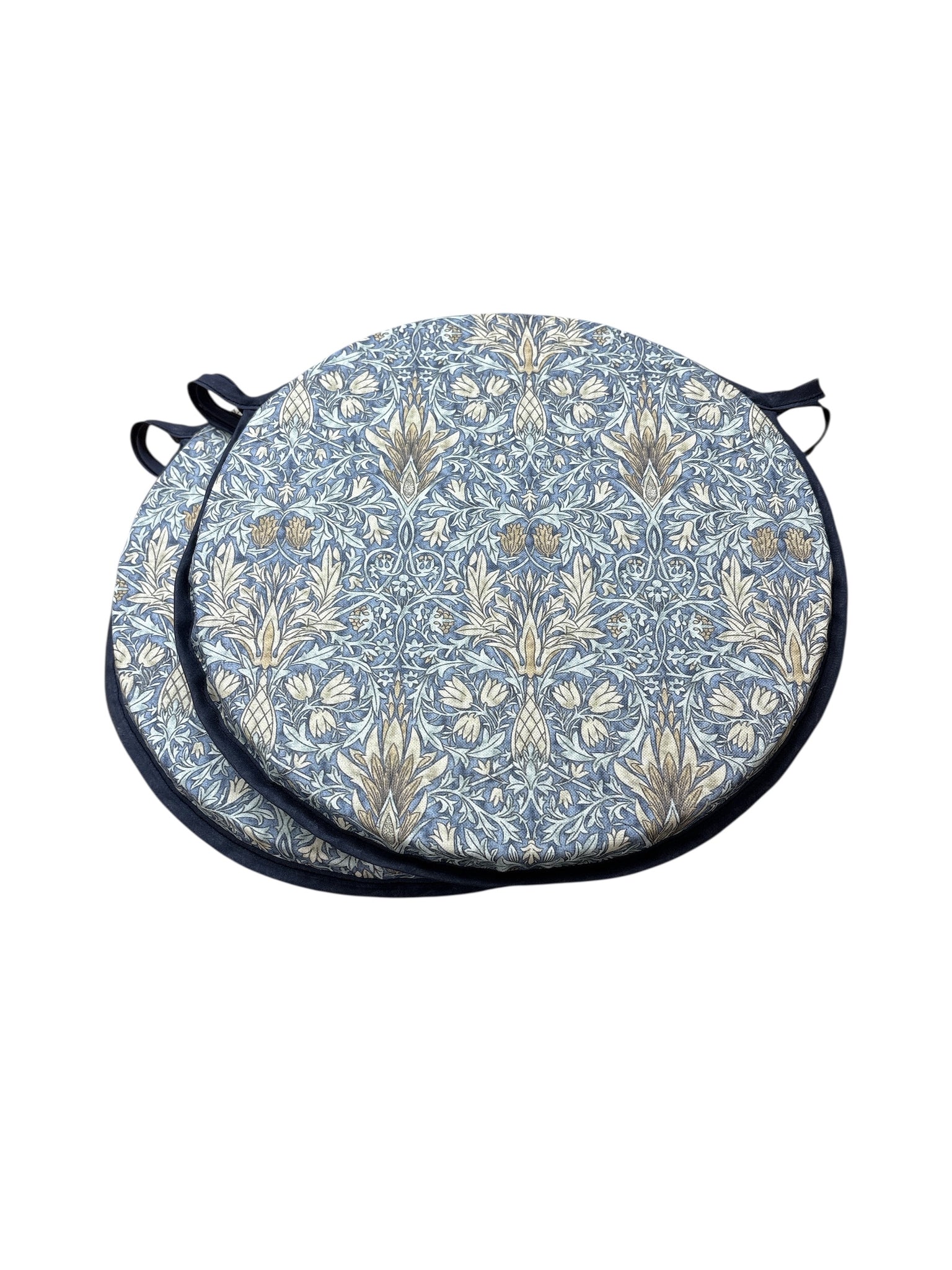 Set of 2 William Morris - Snakehead Denim 100% Cotton Round Bistro Seat Pads.