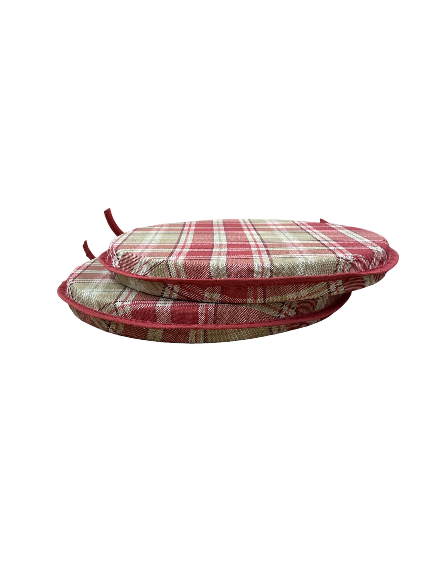 Set of 2 Highland Check Red Round Bistro Seat Pads.