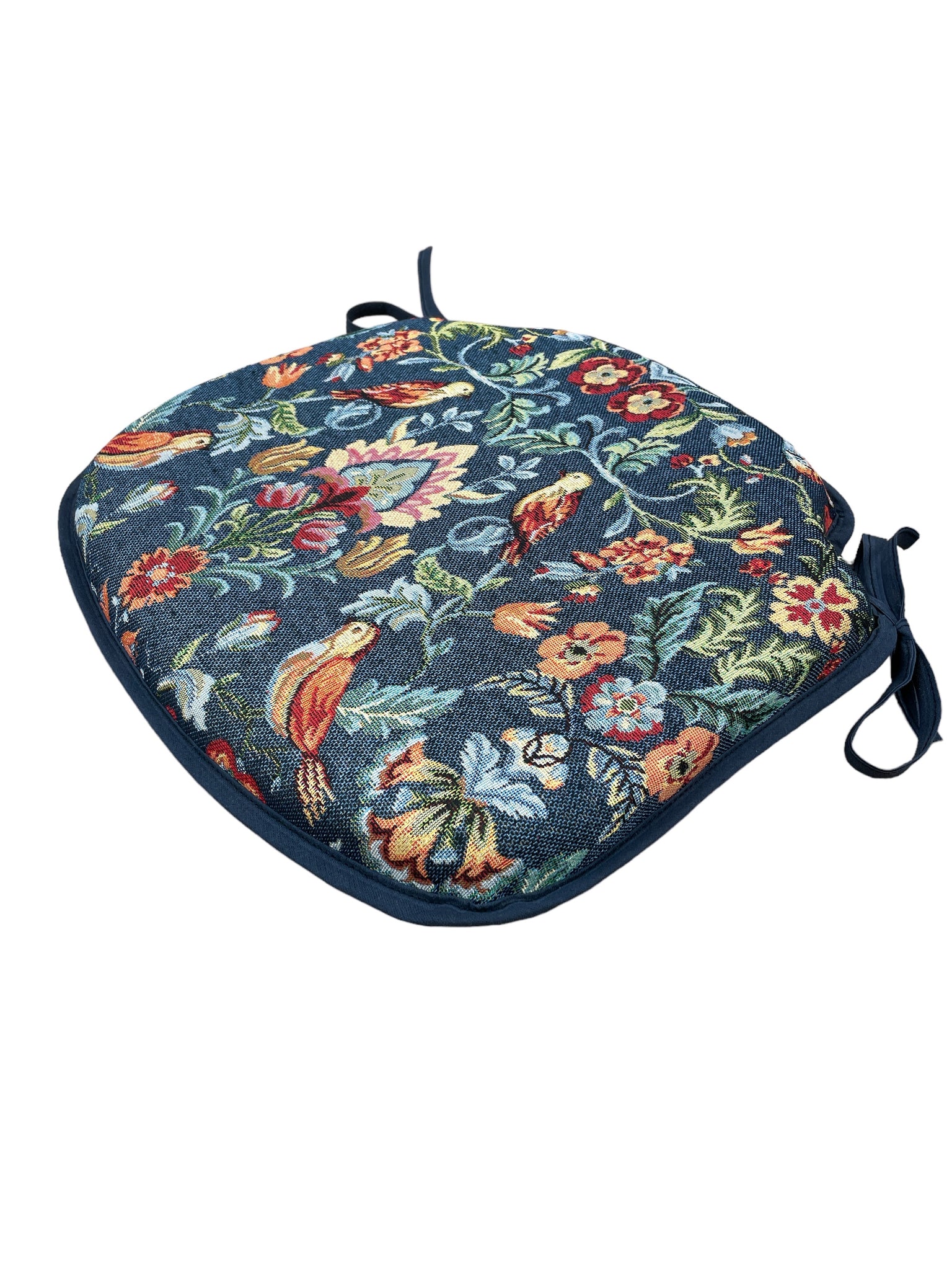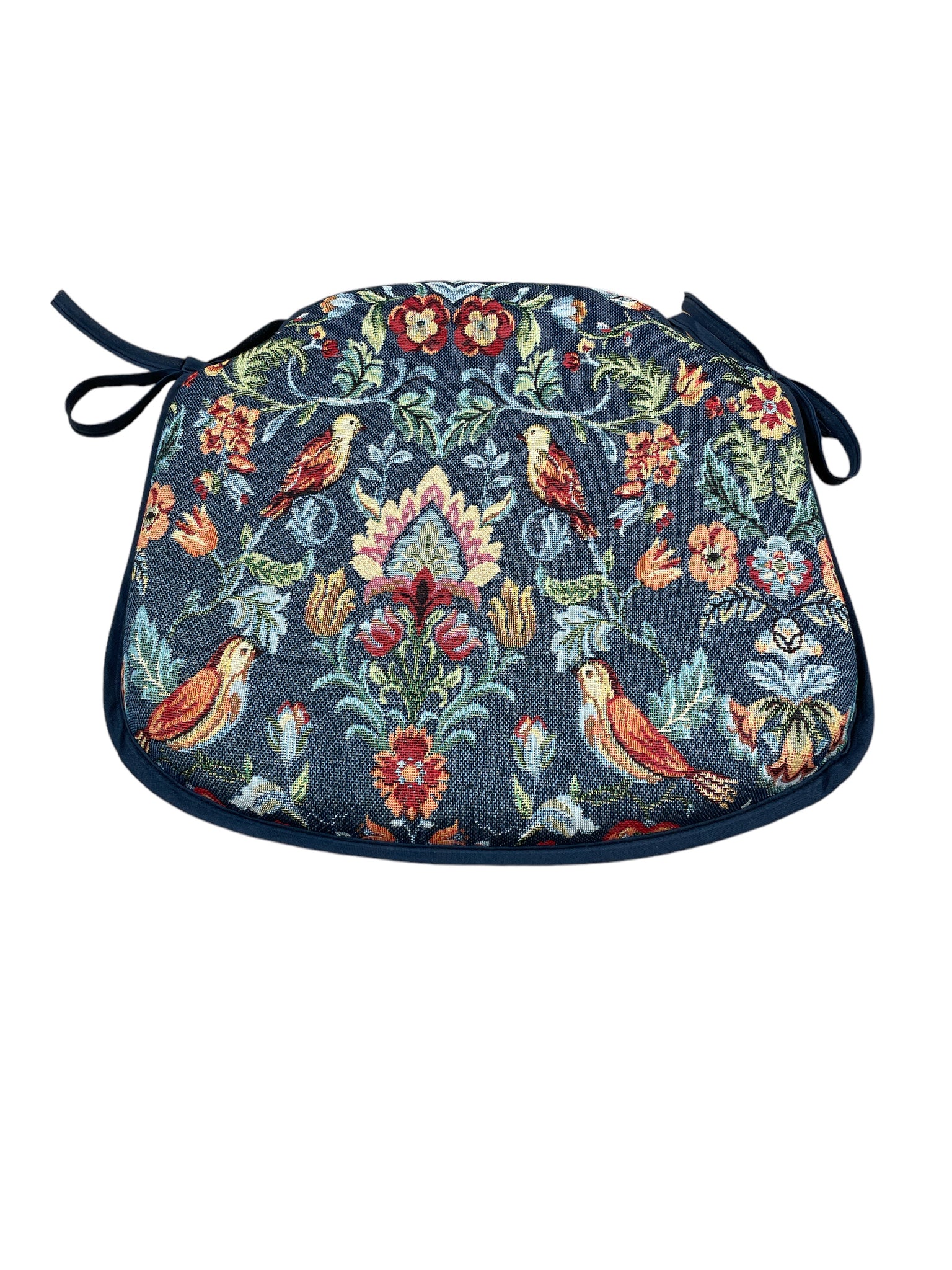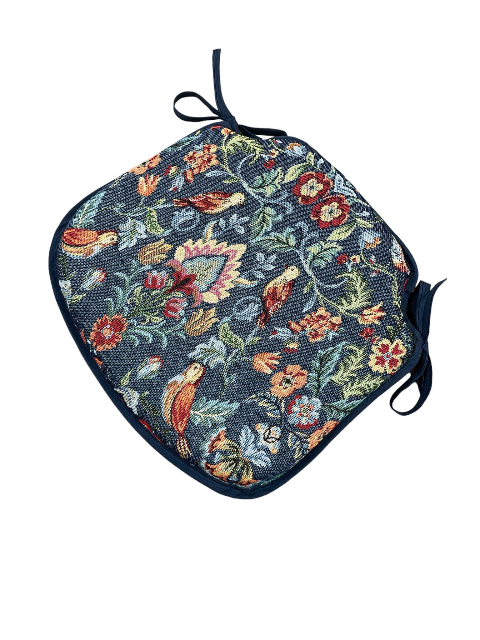 William Denim Tapestry Small Spindle Back Tie-On Seat Pad