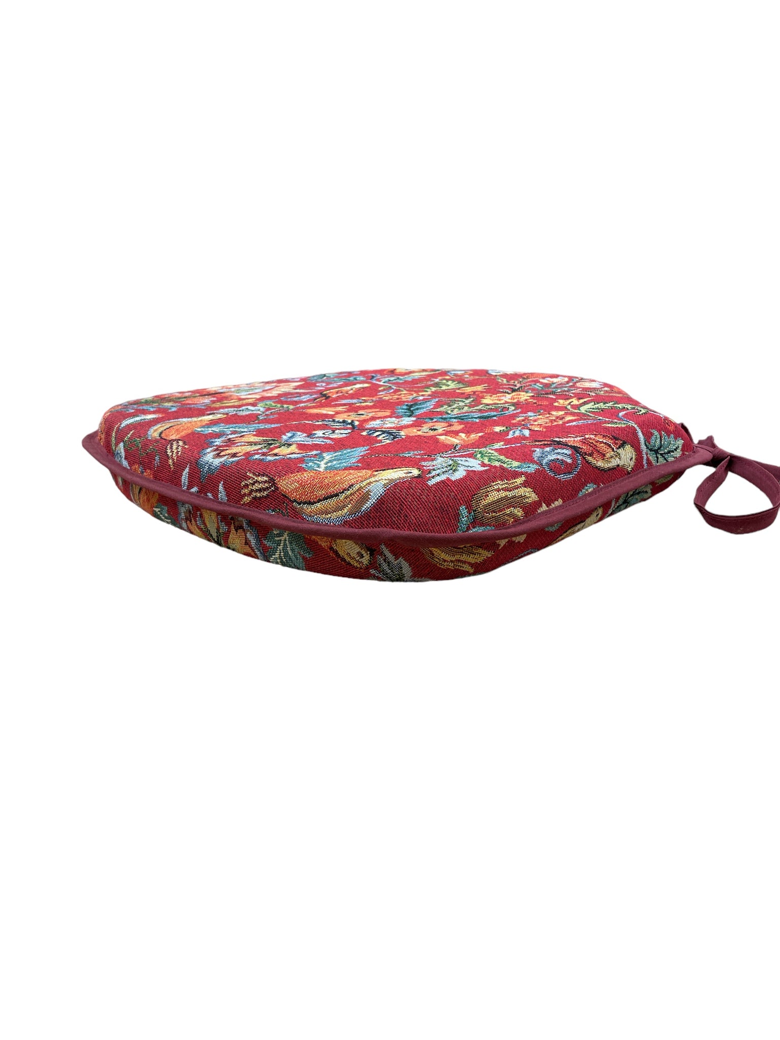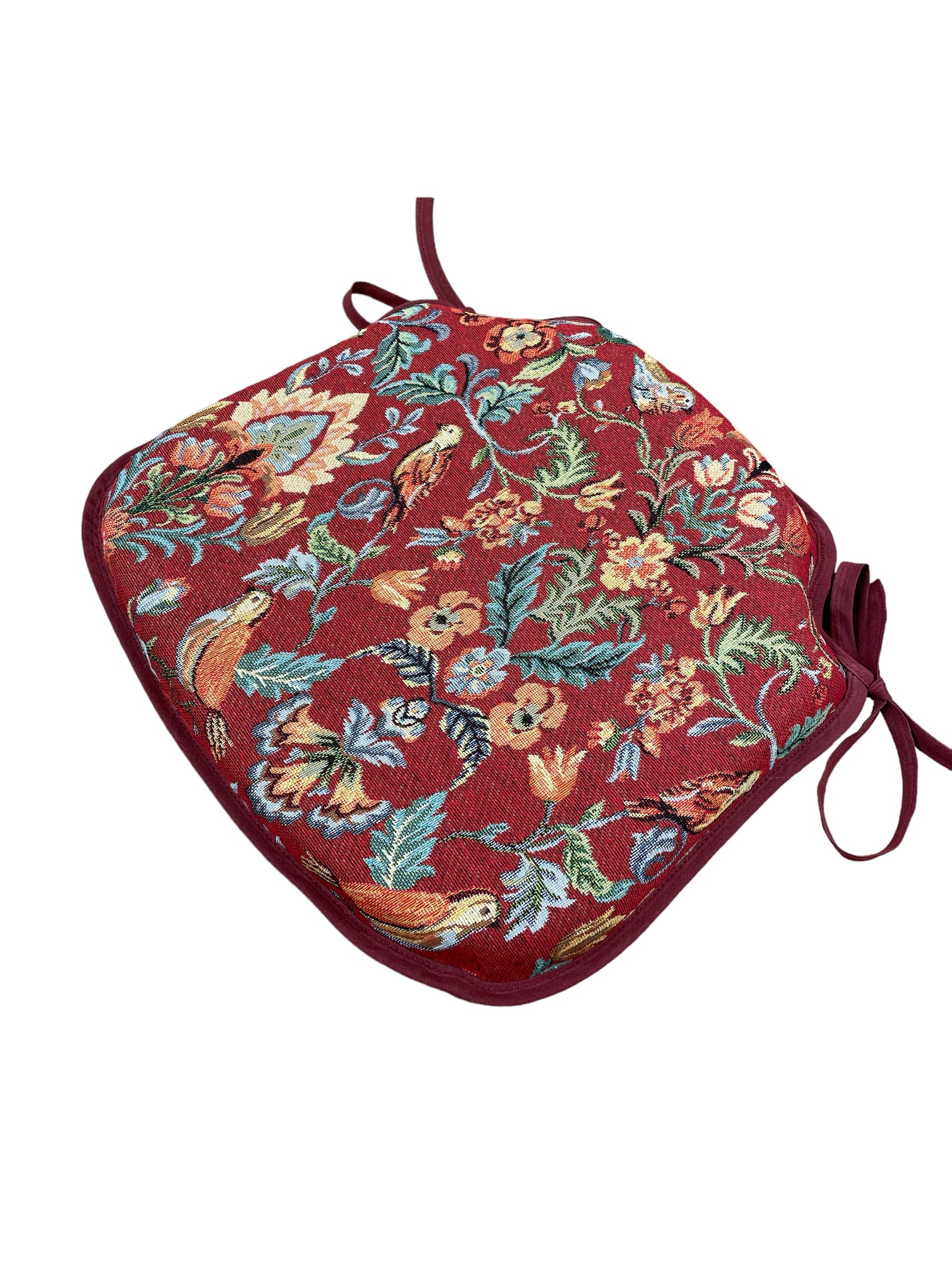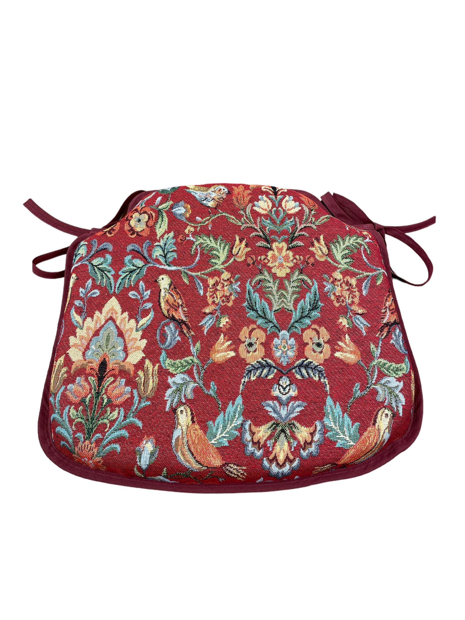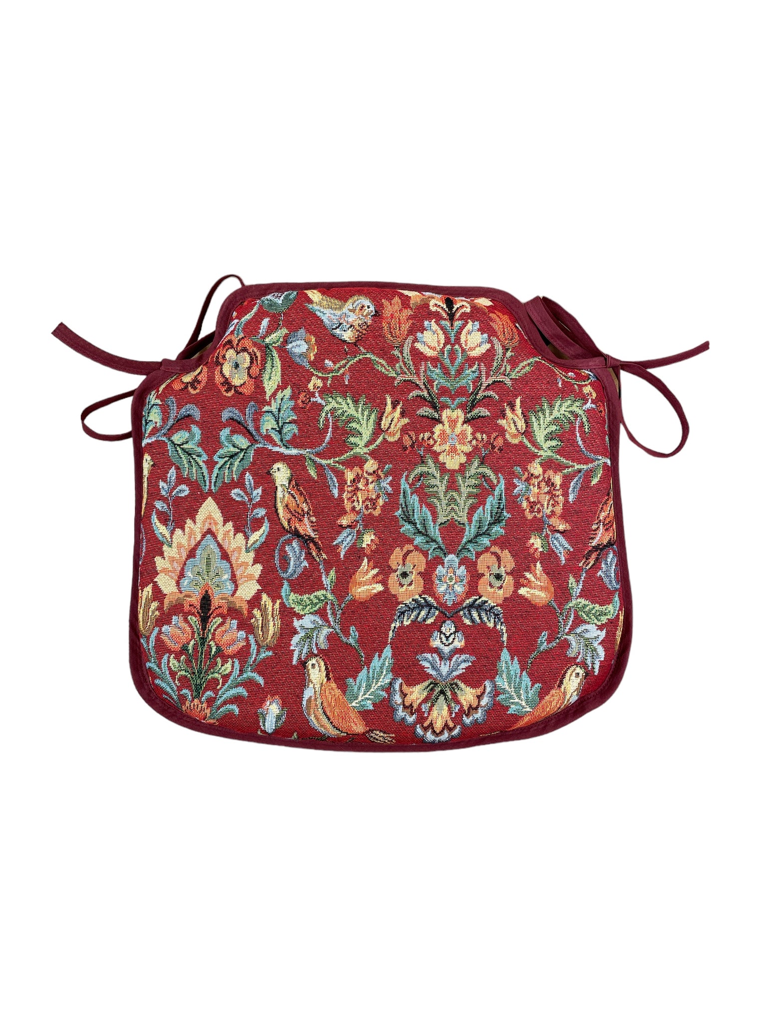William Red Tapestry Small Spindle Back Tie-On Seat Pad