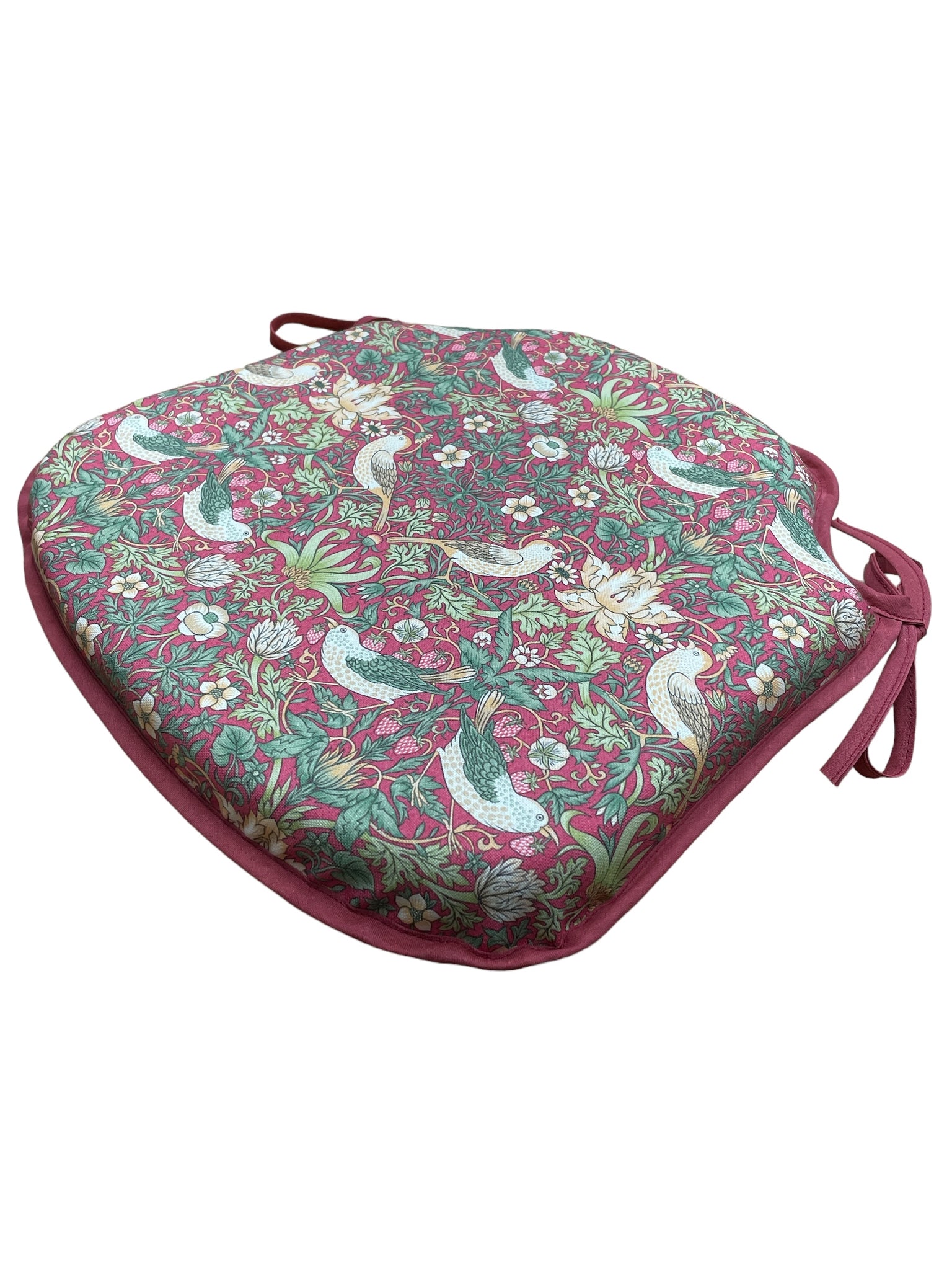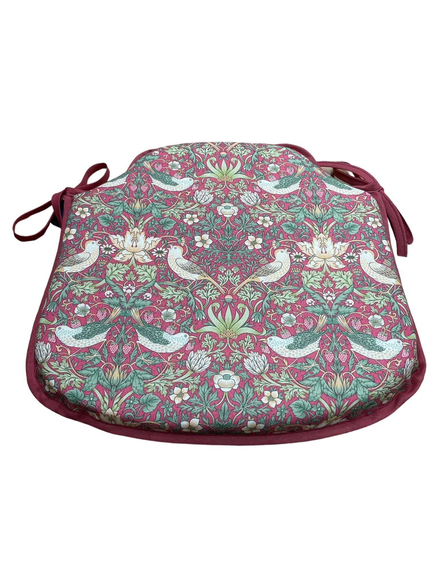 William Morris - Strawberry Thief Crimson 100% Cotton Small Spindle Back Tie-On Seat Pad