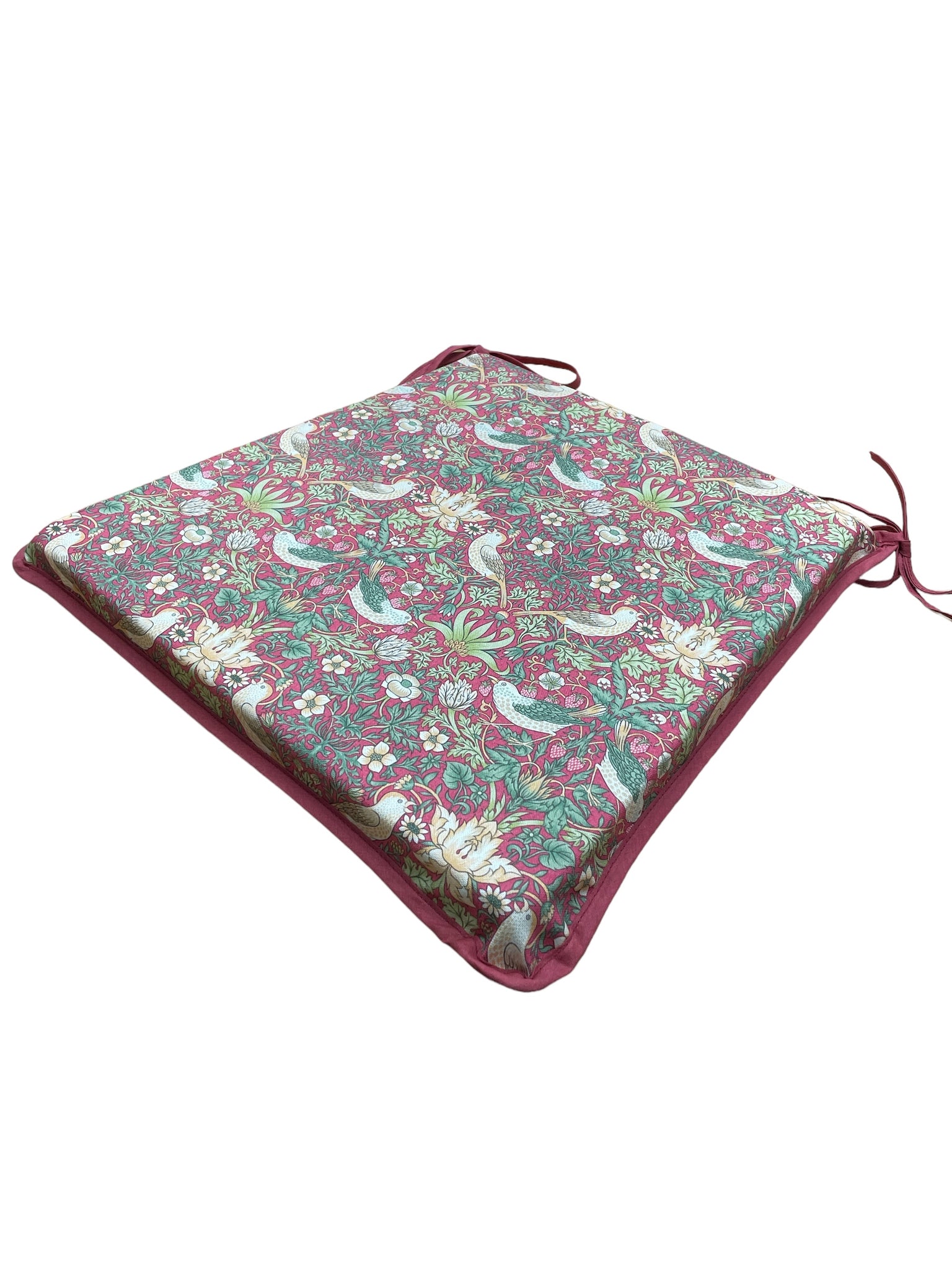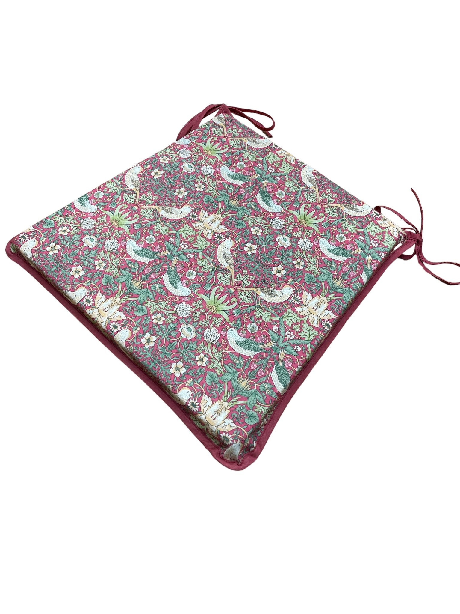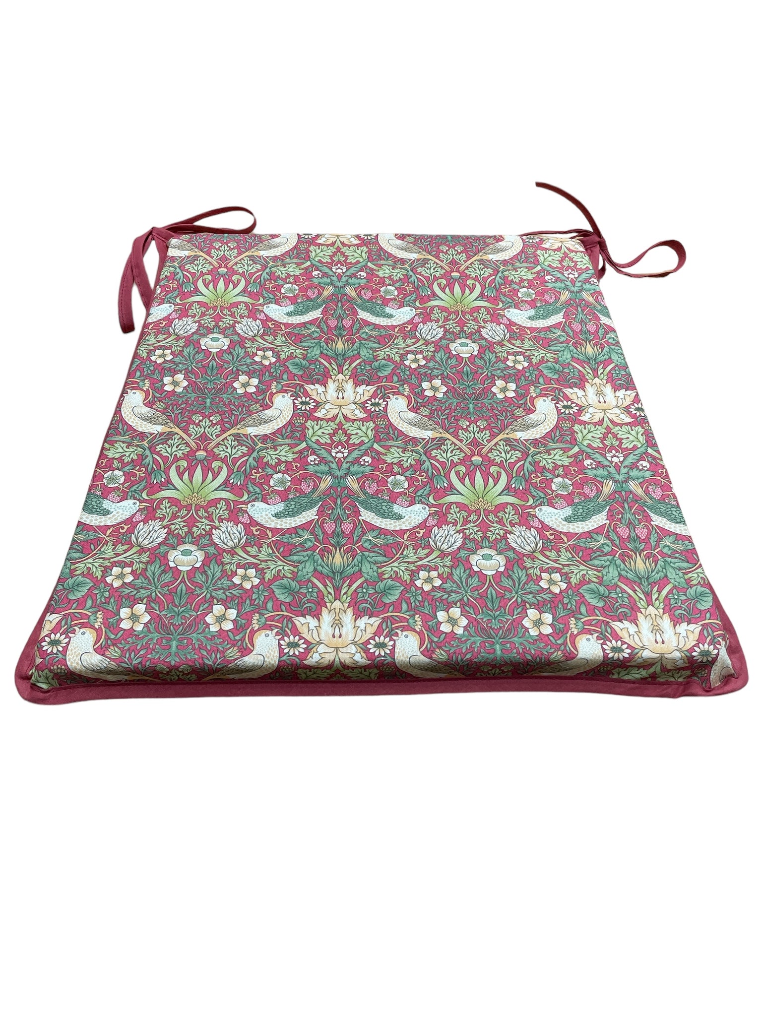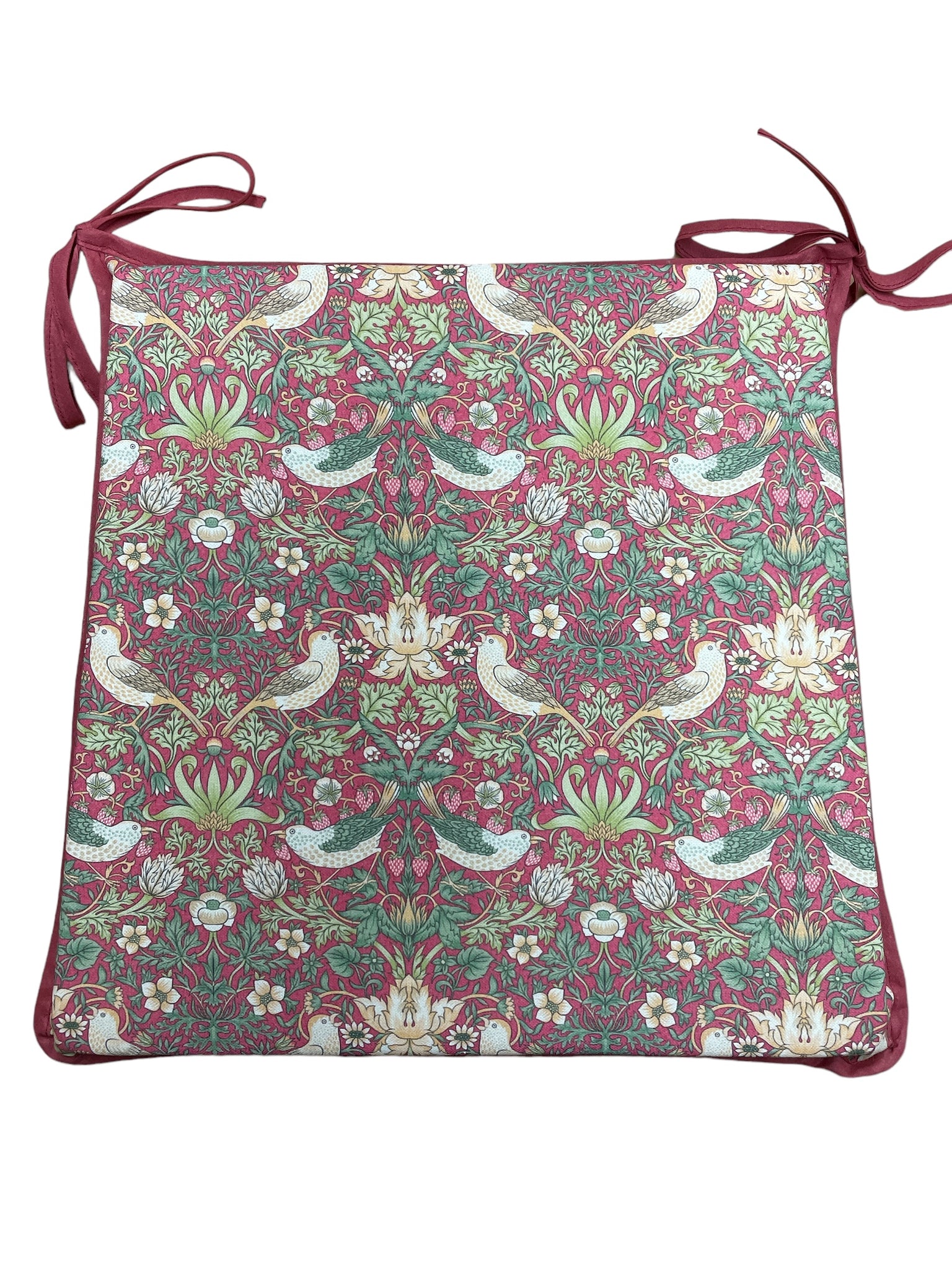 William Morris - Strawberry Thief Crimson Tapered Tie-On Seat Pad